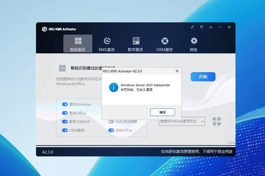 智能激活、激活成功率高、支持静默参数、几乎支持所有 Windows / Office 所有版本。