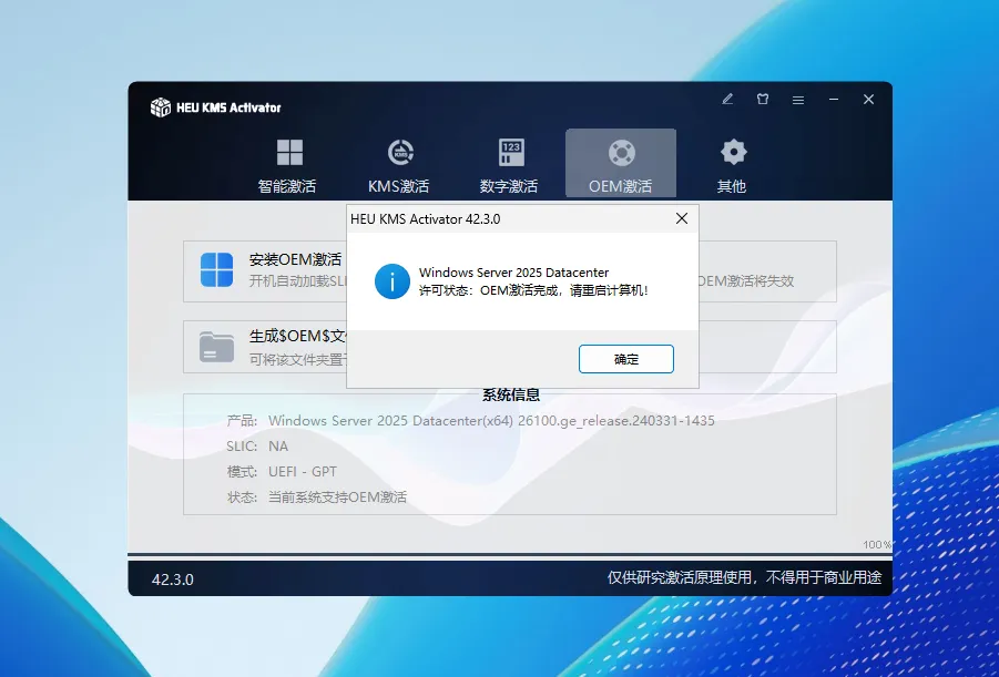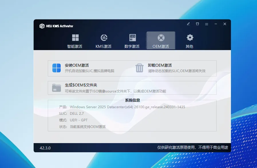 - 卸载OEM激活信息:清除动态加载的 SLIC 等信息,OEM 激活将失效。
